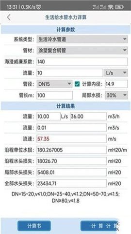 1、给排水计算器的界面简洁、操作方便、速度快,可以帮助用户快速准确地进行给排水的计算和设计。