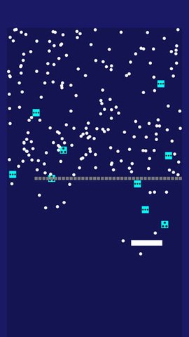 2、玩家可以利用游戏中的技巧,将小球打到两排方块的中间,使其不会掉下来,一直在上面反弹。