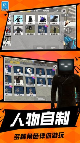 4、在游戏中你还可以根据自己的作战部署,在场景内添加建筑部件和车辆道具,设置障碍,为自己增加作战优势,在与马桶人的作战中赢取胜利。