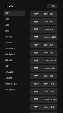 1、您可以点击【Histar】来观看电视直播,畅享丰富的视频内容。