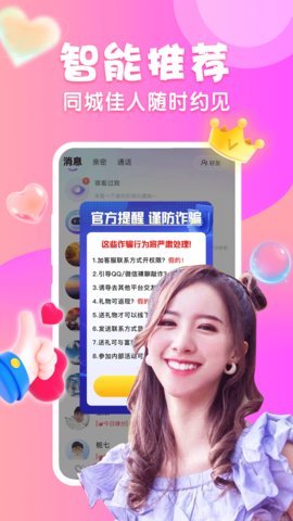 1、可甜是一款同城交友、同城恋爱应用,它不仅提供了丰富的功能和特色服务,还严格遵守相关法规和要求,确保了用户的安全和隐私。