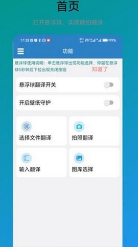 1、这款应用支持多种翻译方式,如悬浮球翻译、拍照翻译以及图库选择翻译等,极大地提升了用户的翻译效率和体验。