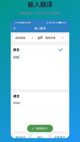 1、用户可以在进行翻译时方便地分享翻译结果,或者将翻译结果记录下来以备日后使用。