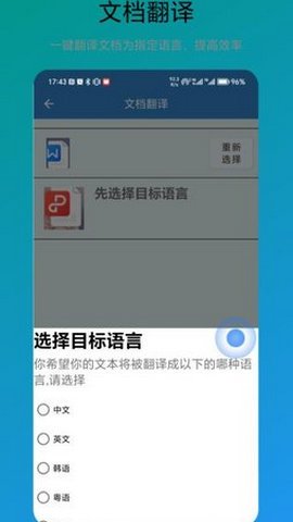 2、该应用还支持文件翻译,用户可以选择文件进行翻译,简化了翻译流程。