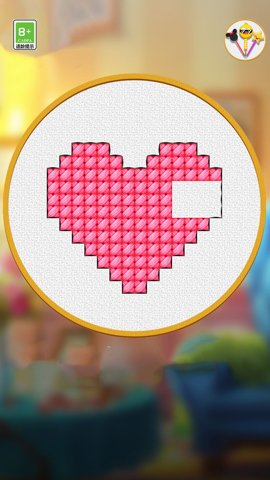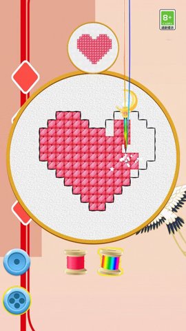 1、玩家可以在钻石涂鸦游戏中使用绣针在绣布上点缀出各种色彩斑斓的图案,创造出形形色色的图案,有狮子,有冰淇淋,发挥你的想象力,创造出不同的图案,谁说树只能是绿色的,红色的也可以,毕竟创造是你来定的。