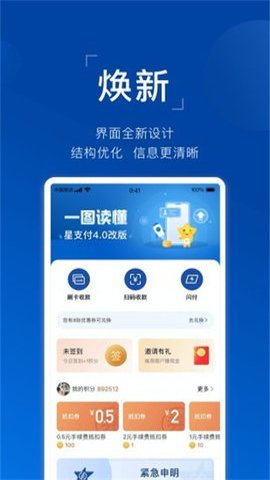 星支付是一款功能全面、安全稳定的生活服务应用。它提供了多种支付方式,包括刷卡收款、扫码收款和闪付等,让用户的消费变得更加轻松快捷。 在星支付的首页,用户可以进行通信缴费。