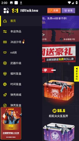 3、注册并下载181skins,享受这个精彩的CSGO开箱网站吧。
