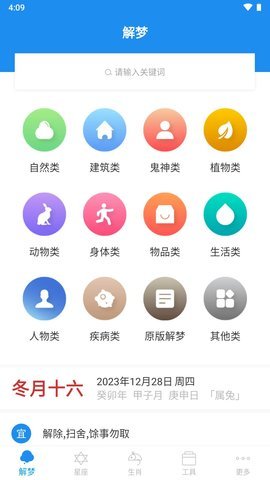 1、除了解梦功能,周公解梦原版还提供了根据生肖星座进行筛选的功能。