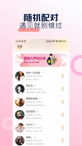 1、同城聊友圈根据用户的实际情况,推荐有趣的聊天对象,为用户提供一对一沟通的功能。