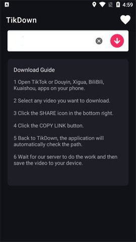 2、用户只需将视频链接复制到首页的对话框中,TikDown会自动解析链接并开始下载。