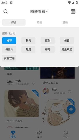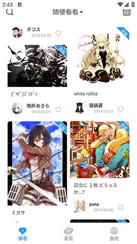 3、在应用的首页界面,浏览并寻找您喜欢的二次元插画。
