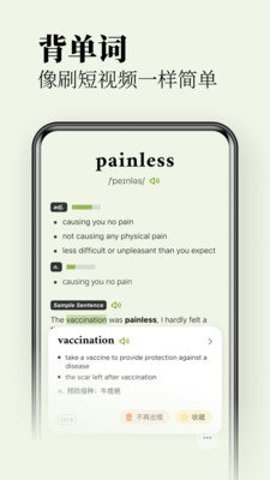 2、告别选择困难:无痛单词App是一款创新的单词学习工具,采用科学记忆方法,帮助用户高效地记住单词,从而提高英语水平。