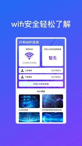 1、除了连接WiFi网络,晨曦闪电WiFi连接还为用户提供了安全检测功能,保障用户的上网环境安全。