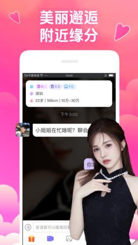 本地甜爱是一款同城交友与约会的手机应用,它以其独特的功能和服务受到了广大用户的青睐。通过本应用,用户可以轻松结识同城的单身男女,展开一场浪漫的邂逅或建立长久的友谊。本地甜爱app通过智能匹配机制,根据用户的兴趣爱好和行为习惯,推荐相匹配的内容和服务,使用户在享受交友乐趣的还能发现更多志同道合的朋友。