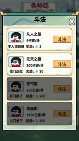 1、玩家可以选择加入不同的宗门,学习最顶级的修炼功法。