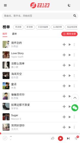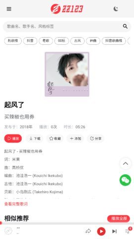 4、zz123音乐还根据用户的听歌历史和偏好,智能推荐相应的音乐,让用户能够发现更多符合自己口味的音乐。