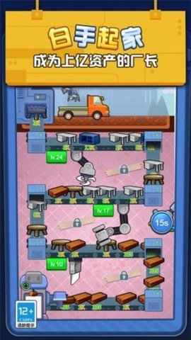 3、通过不断打螺丝赚取金币,玩家可以努力晋升为工厂经营者,负责制造、生产和销售各种产品。