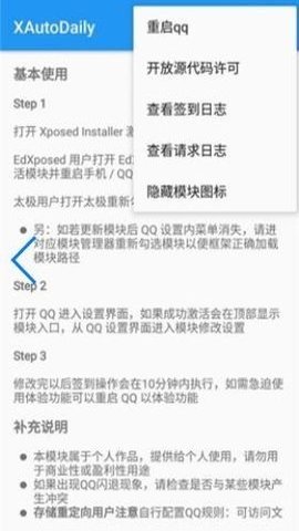 2、XAutoDaily是一款需要框架支持的自动签到模块软件,它能够帮助用户实现QQ的自动签到功能。