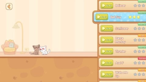 4、以猫咪为主题的游戏一直受到人们的喜爱,因此喵咪冲刺选择了可爱的猫咪形象作为核心,吸引玩家的注意力。