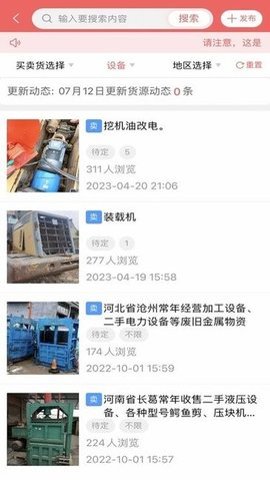 3、用户还可以通过废品大全App实时发布买货、卖货和设备供求信息,推送给全国的同行,更快地达成所需。