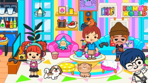 3、爱玛的世界是一款有趣而富有想象力的娃娃屋游戏,里面包含了互动房屋、商店、学校、医院等等各种等待探索的房间。