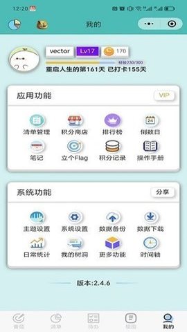 4、人生重启计划App的功能非常齐全,包括番茄钟、正计时、ToDo、日常、计量、记账、倒数日、笔记、flag系统等,所有这些功能都被整合在一起,方便用户使用。