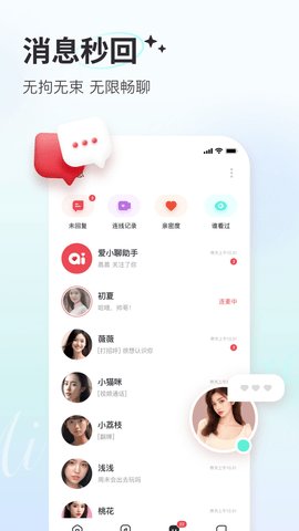 1、爱小聊交友还支持视频、语音、文字和赠送礼物等多种互动方式。