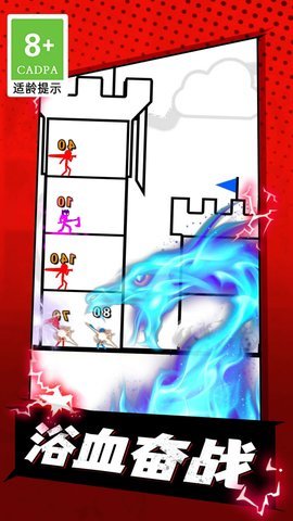 2、游戏采用了独特的火柴人美术风格,简洁的线条勾勒出最强战斗士的形象,给玩家带来全新的视觉体验。