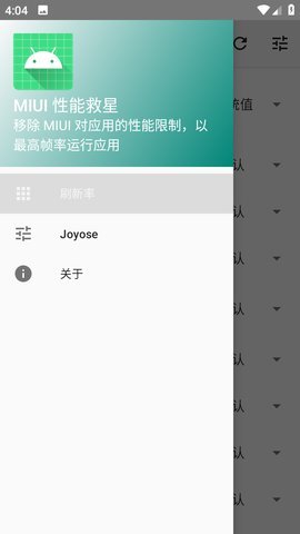 4、在MIUI性能救星的设置中,有一个"关于"页面,可以隐藏应用的桌面图标。