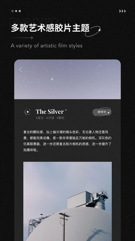 1、每个主题都根据不同的风格搭配了不同的胶片颗粒和水印,您可以轻松使用这些特效,为照片赋予复古的韵味。