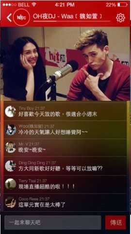 4、HitFmapp还有实时聊天室,用户可以在聊天室中发表自己的看法,参与节目的讨论。