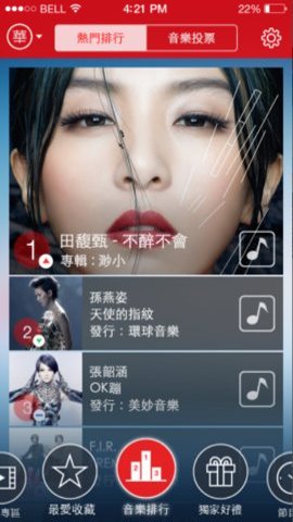 4、它采用专业类型化音乐电台操作模式,滚动播放各种热门金曲。