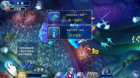 2、除了捕鱼外,游戏还采用了全新的概念,通过触摸屏幕来射击武器进行捕鱼。