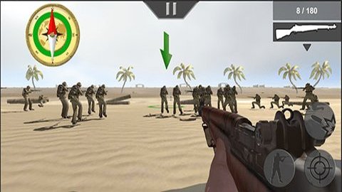 1、游戏真实还原了二战的各个战役,为你准备了不同的场景,从海滩登陆到丛林历险,让你感受到真实的战争场景。