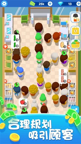 3、完成任务可以获得丰厚的奖励,提升自己的实力,快速解锁升级设施,调整超市设备。