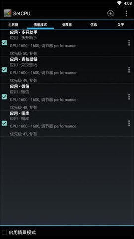 2、如果启用了情景模式或小部件,请不要使用任务管理器终止SetCPU的运行。