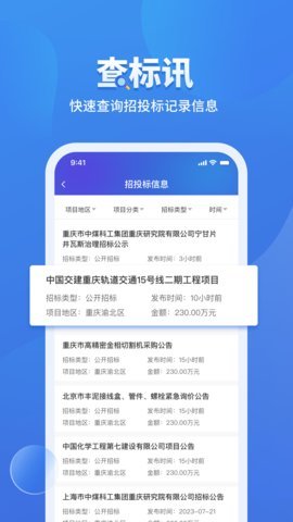 3、通过查标讯功能,用户可以快速查询招投标记录信息,洞悉市场动态,捕捉商机。