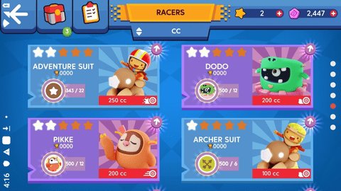 3、你可以通过升级汽车、赢得奖励、建立奖杯室和创建赛道来拯救朋友。