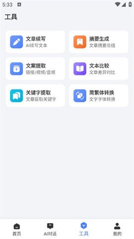 2、它能帮助用户一键生成对联,智能生成每日一言文案,还能生成智能祝福语、藏头诗和简历模板。