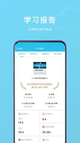 2、除了丰富的书籍资源,云书App还提供了学习报告功能,记录用户的学习轨迹,帮助用户更好地掌握学习进度。