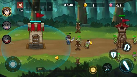 3、玩家还可以带兵推塔,升级角色,选择三个不同能力的角色来进行战斗。