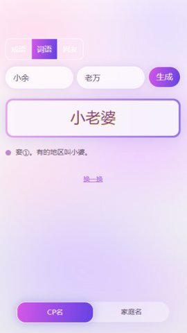 2、CP名自动生成器支持单词和成语,并且游戏玩法非常有趣。