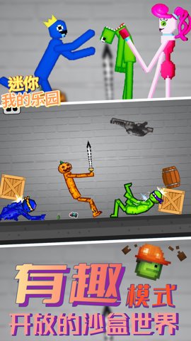 迷你我的乐园是一款非常有趣的像素沙盒游戏,玩家可以在游戏中建立自己的乐园并探索一个充满乐趣的开放世界。游戏中的玩家需要找到需要拿的武器,并将武器拖到小人下方,以使用各种各样的道具来攻击小人,包括撕裂、刺伤、射击、燃烧、中毒等等。游戏中每个地图里都有各种不同的敌人,合理使用不同的工具即可击败对手,但每种工具的攻击次数是有限的哦!