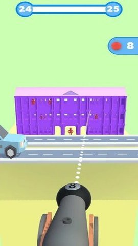 2、玩家需要操控弹弓的角度和力度,在街道上乱射,游戏中破坏的建筑物越多,得到的分数也越高。