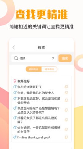 2、它拥有30w+的聊天话术、恋爱话术、撩妹话术、情感话术、恋爱术语、高情商聊天术和土味情话等等,完美解决了遇到不知道回复女生时的尴尬。