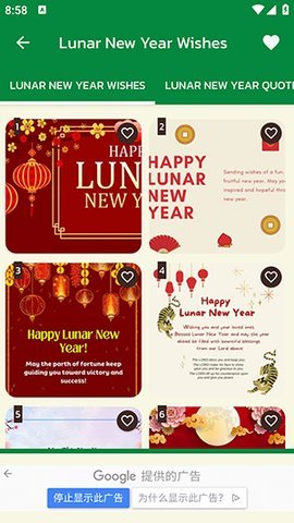 3、与其他应用不同的是,农历新年祝福采用全新的图片与文字结合的方式,让祝福更加生动有趣。
