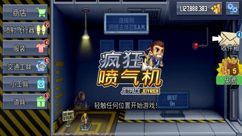 1、玩家需要操控小人使用喷气机进行冒险挑战,不断赚取和收集金币可以替代各种全新的喷气背包和有趣的道具。
