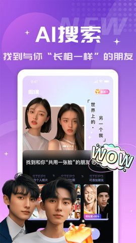 1、通过独特的算法,它在全球范围内寻找与你长相相似的人,让你们有机会邂逅相似的脸型,开启一段奇妙的社交旅程。
