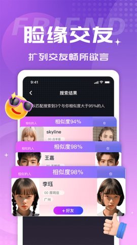 3、如果你想要寻找与自己长得相似的人,或者想要拓展自己的社交圈,不妨来脸缘交友app一试。