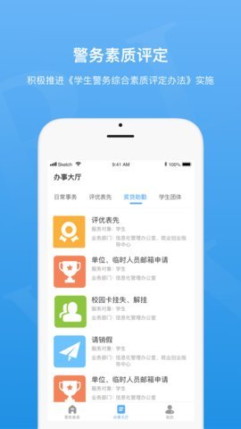 警务素质评定是一款生活服务应用,通过综合测评,对学生的学习、考试测评、教师评价等方面进行综合考评。该应用通过数据沉淀,将学生在每个学习阶段的个人表现展现出来,并最终形成个人数据。警务素质评定App是一款评定系统软件,可以帮助学生在线评估素质教育成绩,学生在完成提交后,系统会自动进行评分。